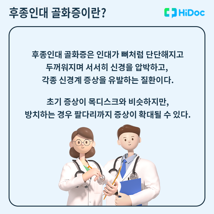 후종인대 골화증은 인대가 뼈처럼 단단하고 두꺼워지다가 신경을 압박하면서 증상이 나타나는 질환이다. 초기에는 목과 어깨 부위의 압박감과 통증만 느껴지다가, 증상이 진행되면 하반신 마비까지 발전할 수 있어 주의가 필요하다.