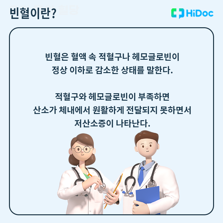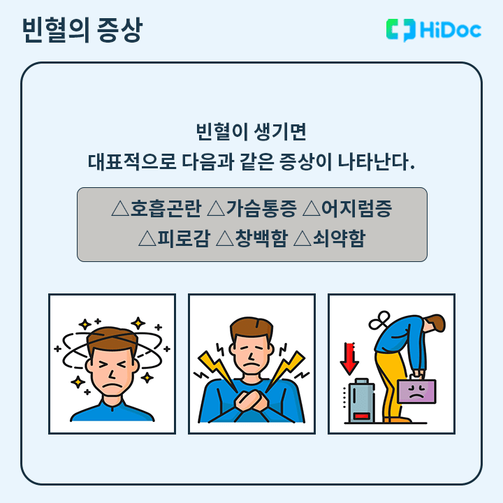 빈혈은 혈액 속 적혈구나 헤모글로빈이 감소해 체내 곳곳에 산소가 원활히 전달되지 못하는 것을 의미한다. 빈혈이 생기면 △호흡곤란 △가슴 통증 △어지럼증 △피로감 △창백함 △쇠약함 등의 증상이 나타난다.