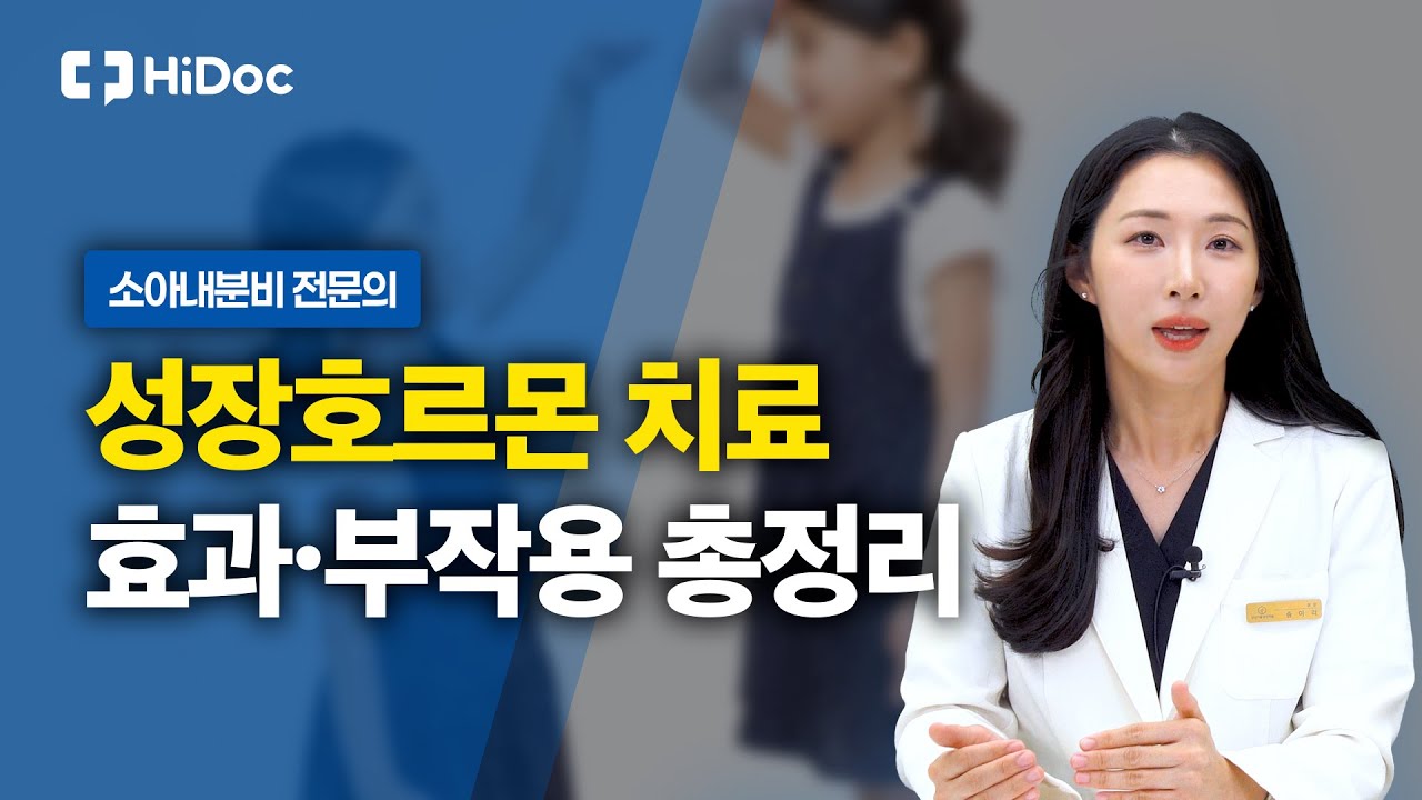 반면 두개내압 상승, 고관절 이상과 같은 부작용도 발생할 수는 있는데요, 두개내압 상승은 1,000명 중 1~2명 정도에서 발생할 수 있고 두통이나 구토, 시야 흐림으로 나타날 수 있습니다. 고관절 이상도 1,000명 중 2~3명으로 매우 드물게 보고되고 있습니다. 기저질환이 없는 저신장 아동에서 적응증에 따라 적절한 용량을 사용하는 경우에는 이러한 심각한 부작용의 위험은 크지 않은 것으로 확인되고 있습니다. 다만 치료 중에는 성장 속도, 체중, 혈액 검사 등을 통해서 정기적인 모니터링이 필수적입니다.